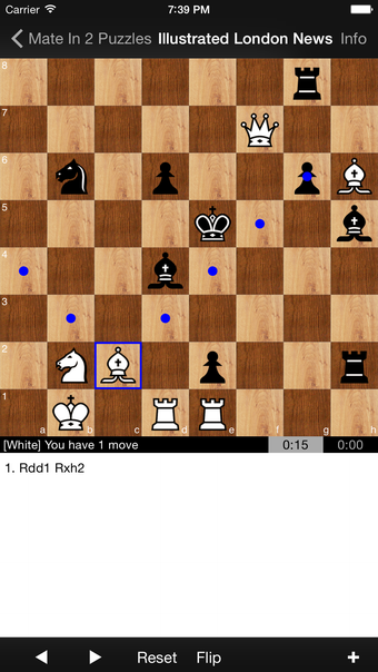 이 앱은 다양한 곳에서 가져온 고전 퍼즐의 큰 컬렉션을 특징으로 합니다. iPhone, iPod touch 및 iPad에서 자신의 속도로 이 퍼즐들을 해결할 수 있습니다. 2수 메이트 체스 문제는 게임을 배우거나 기술을 향상시키려는 사람들에게 특히 유용합니다.